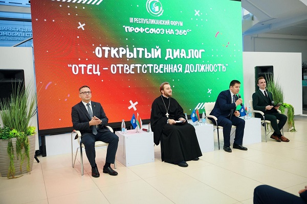 Собственным опытом отцовства поделились заместитель министра образования Александр Кадлубай, иерей Николай Повный и председатель первичной профсоюзной организации ГГУ им. Франциска Скорины Сергей Азявчиков.