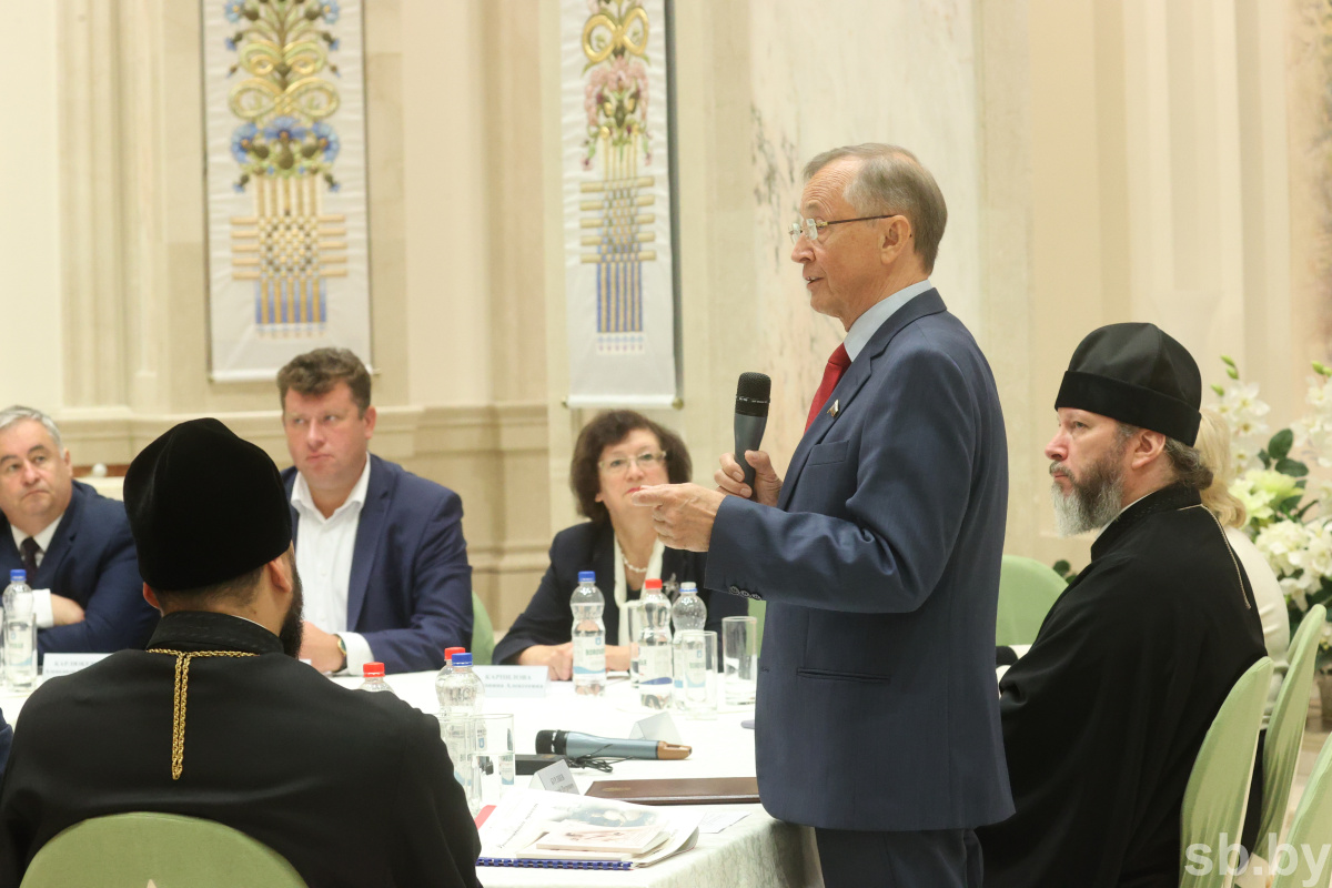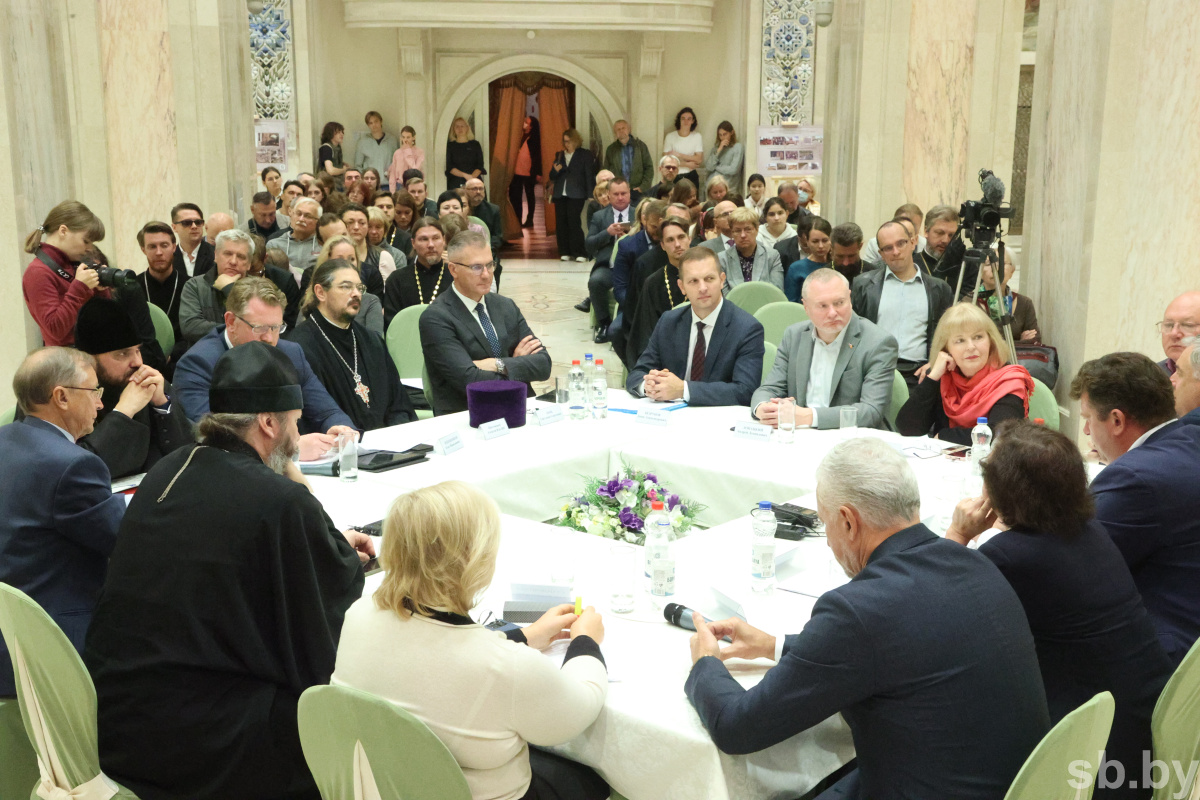 Одним из центральных мероприятий стал круглый стол «Традиционные духовно-нравственные ценности в культуре Беларуси и России как основа формирования национальной идентичности, воспитания нравственной личности и патриотизма», который прошел в Храме‐памятнике в честь Всех Святых и в память о жертвах, спасению Отечества нашего послуживших.