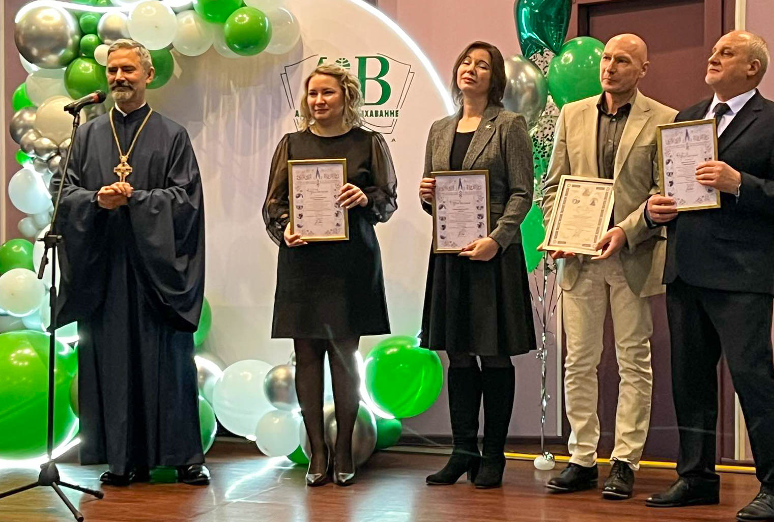 Среди тех, кто вручил награды сотрудникам издательства, был и протоиерей Александр Шимбалев. Грамоты и благодарности Синодального отдела Белорусской Православной Церкви по сотрудничеству со светскими учреждениями образования вручены за соработничество в издании школьных пособий «Основы духовно-нравственной культуры и патриотизма» директору Валентину Новогродскому, редактору Ольге Ваниной и другим работникам учреждения.