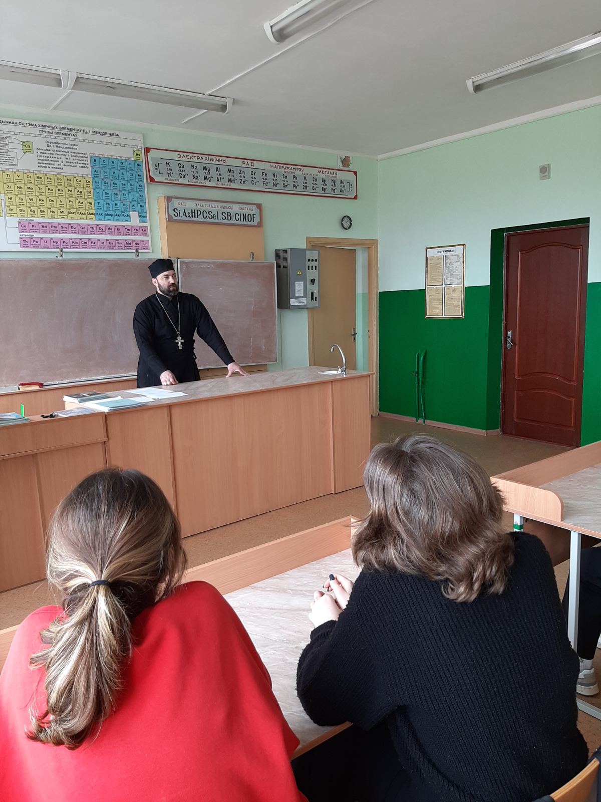 В рамках работы над проектом состоялась встреча команды девушек с настоятелем прихода храма Святого Пророка Илии аг. Илья Вилейского района иереем Андреем Громовым. Беседа была на тему «Любовь. Целомудрие. Брак». Во время лекции священник рассказал о целомудрии, об основных жизненных ценностях христиан, о православных семейных праздниках, о взрослении и воспитании детей.