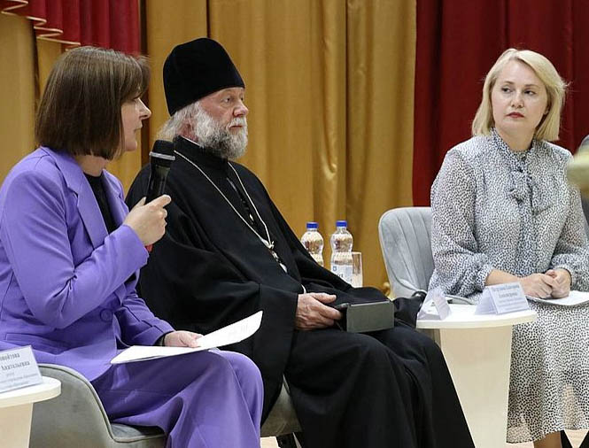 Модератором мероприятия выступила И.А. Старовойтова, ректор Академии образования, кандидат педагогических наук, доцент. Во вступительном слове она отметила значимость и добрые традиции сотрудничества учреждений образования и Белорусской Православной Церкви по духовно-нравственному и патриотическому воспитанию, а также необходимость особого внимания к уровню и эффективности работы в данной сфере с учетом проходящего Года качества.