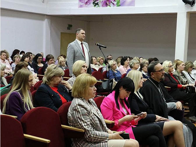 Панорамное представление работы учреждений образования Минской области в сфере духовно-нравственного и патриотического воспитания содержалось в выступлении начальника главного управления по образованию Миноблисполкома Н.Н. Башко. Богатство воспитательного потенциала образования, широкие возможности совместной деятельности в данном направлении и в то же время недопустимость формального подхода к духовно-нравственному и особенно патриотическому воспитанию были акцентированы в выступлении протоиерея Федора Повного, председателя Синодального отдела БПЦ по сотрудничеству со светскими учреждениями образования, кандидата богословия. Значимость системной работы ресурсных центров, их сетевого сообщества, координирующая роль Республиканского ресурсного центра по духовно-нравственному и патриотическому воспитанию явились предметом выступления Г.И. Николаенко, профессора кафедры педагогики и менеджмента образования Академии образования, научного руководителя вышеназванного республиканского центра.
