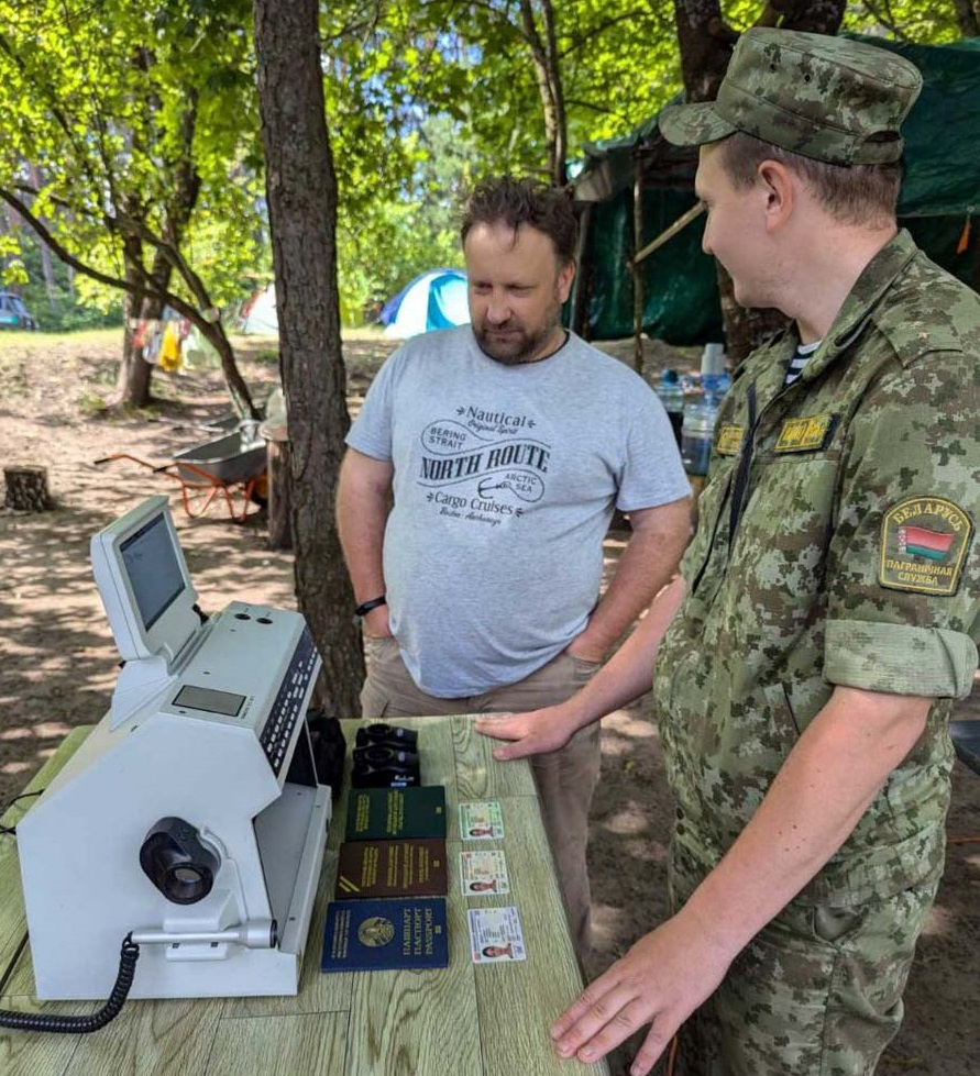 Гостями слета в первый день стали служащие Гомельской пограничной группы, которые ознакомили ребят со специальной техникой для проверки подлинности документов, показали обмундирование, рассказали про особенности службы по охране границы и работу кинологической службы.