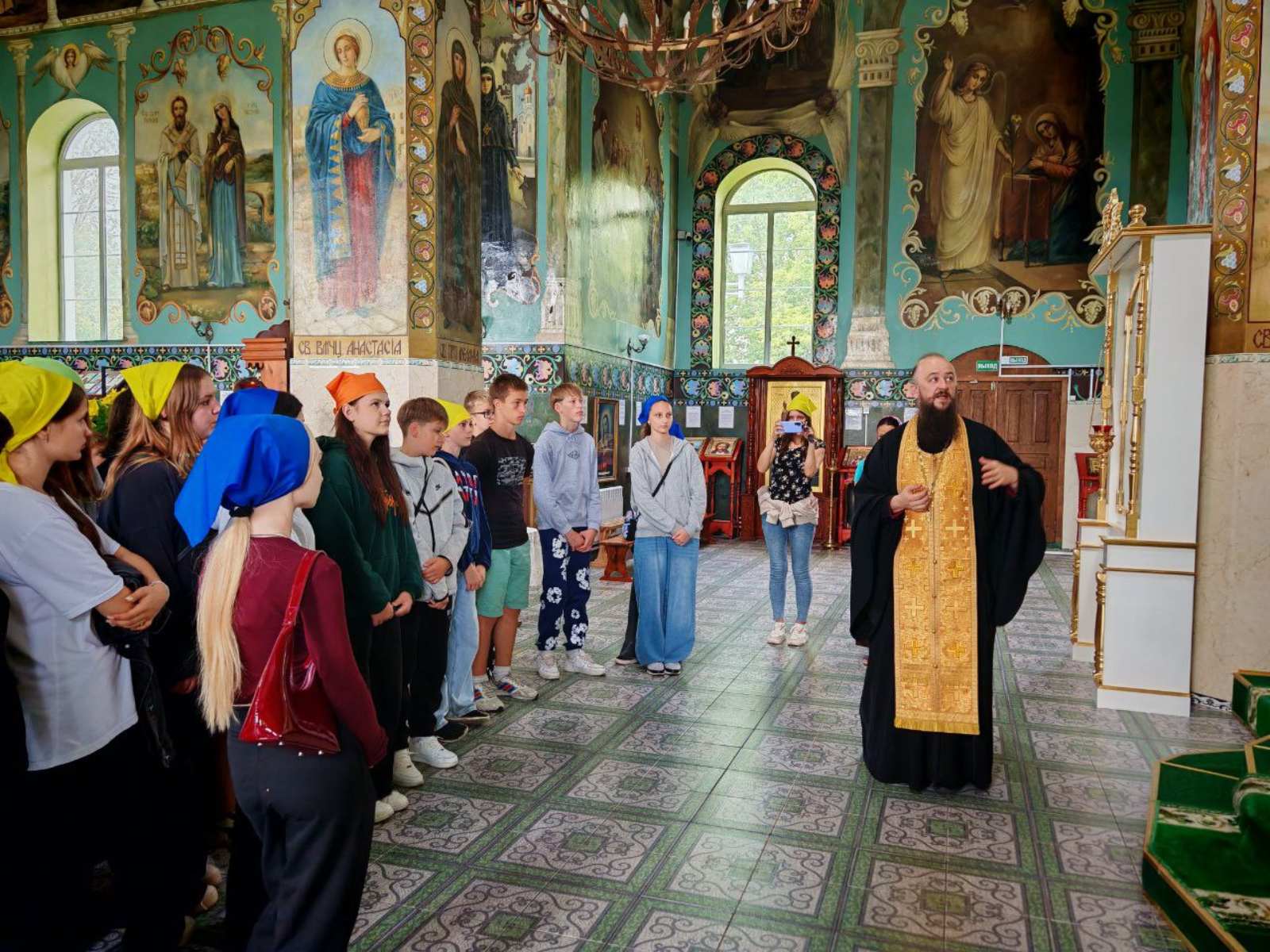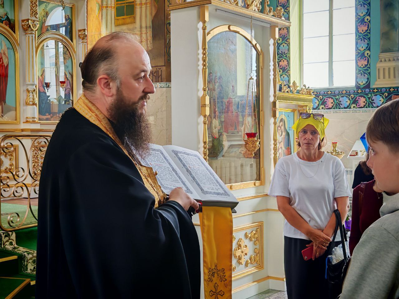 В соборе Святой Живоначальной Троицы в Жлобине 21 июля царила особая атмосфера: здесь на экскурсии побывали учащиеся средней школы №7 и гимназии № 8. Иерей Павел Кулиш рассказал ребятам об устройстве храма, о его святынях, белорусских святых.