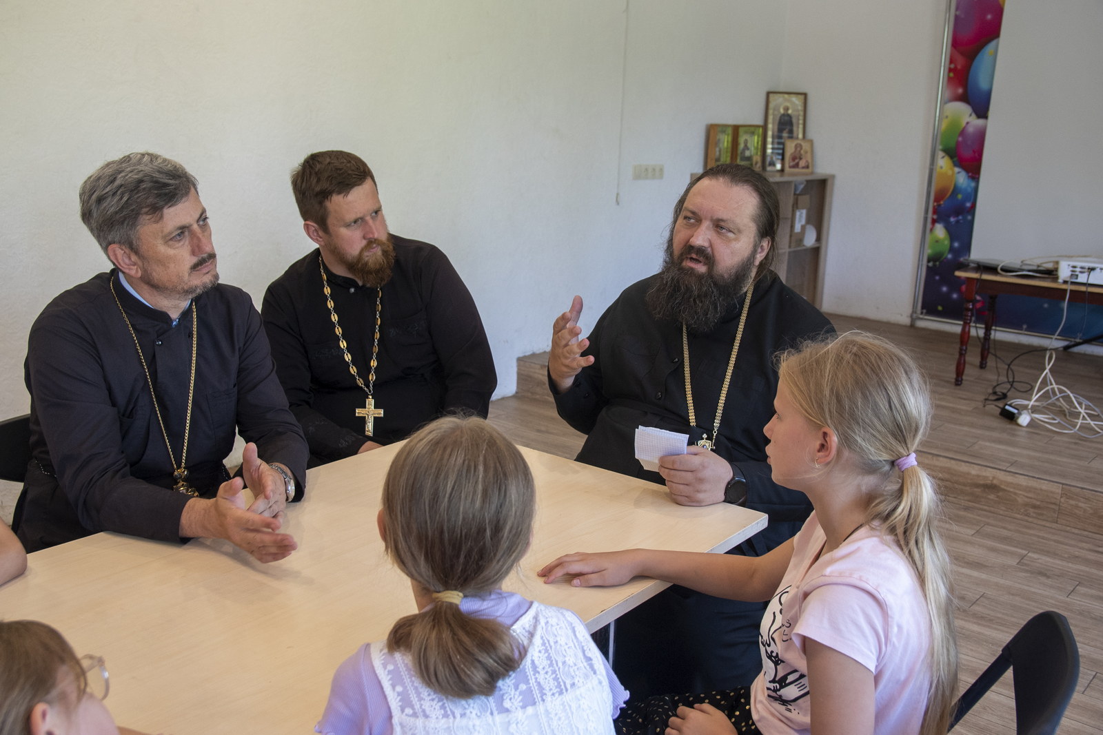 Вместе с ними епископ посетил летнюю школу дневного пребывания, где его уже с нетерпением ждали ребята. Воспитанники основательно подготовились к встрече и задали владыке множество вопросов — о его детстве, об увлечениях в юности, о пути ко Христу, призвании к священническому и архипастырскому служению. Епископ Амвросий с добротой и вниманием отвечал на каждый вопрос, делясь личными историями и духовными размышлениями, что сделало беседу живой и наполненной доверием.