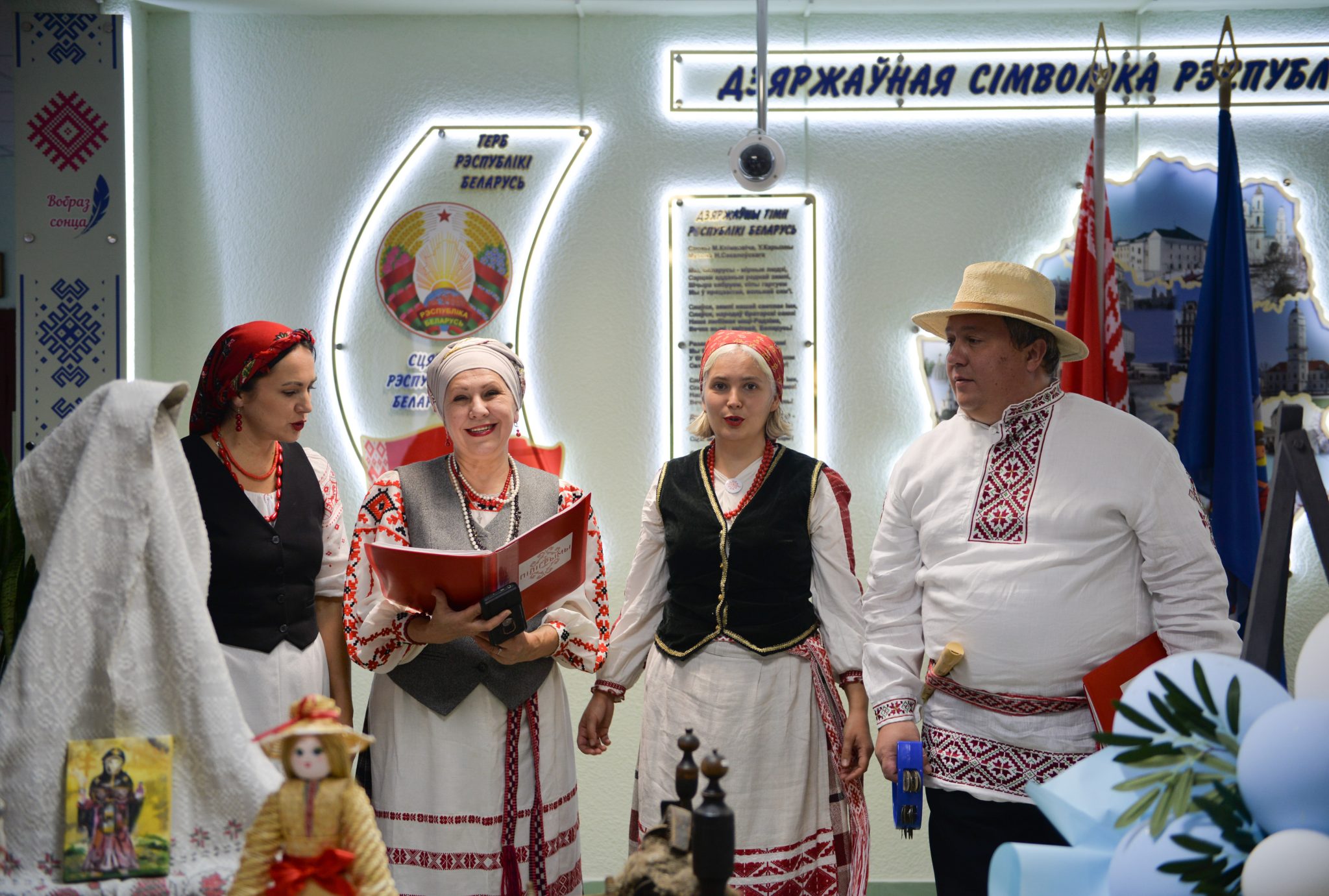 У холе гімназіі гасцей сустракалі беларуская батлейка і экспазіцыя «Традыцыям верныя», якая распавядае пра духоўныя каштоўнасці, што перадаюцца з пакалення ў пакаленне.