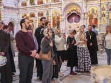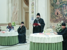 В завершение официальной части перед участниками встречи выступил мужской хор Всехсвятского прихода (регент Дмитрий Токмаков), исполнив несколько музыкальных композиций.