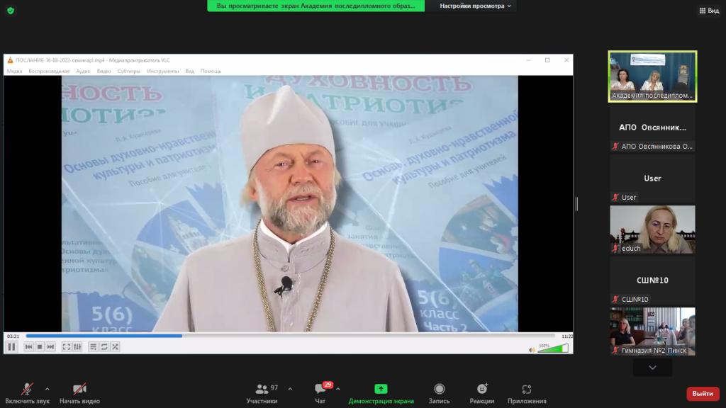 Актуальные направления деятельности по духовно-нравственному и патриотическому воспитанию обучающихся в новом 2022/2023 учебном году были обозначены проректором по научно-методической работе Галиной Ивановной Николаенко. Для обсуждения в регионы направлены различные документы по духовно-нравственному воспитанию учащихся.