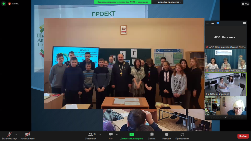 С приветственным видеообращением выступил настоятель Прихода, протоиерей Федор Повный, председатель Синодального отдела Белорусской Православной Церкви по сотрудничеству со светскими учреждениями образования.