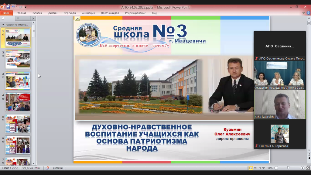 Директор ГУО «Средняя школа № 3 г.Ивацевичи» Брестской области Олег Алексеевич Кузьмин представил эффективный опыт работы по духовно-нравственному воспитанию учащихся.